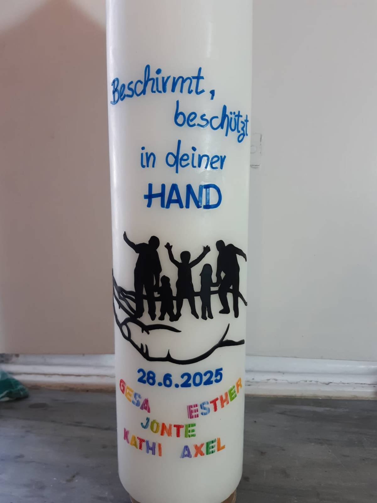 Oft wird sie nach der Einladungskarte gestaltet oder recht modern mit Herzen, die in unterschiedlicher Gestaltung miteinander verbunden sind. Die Wachsplatten, mit denen wir arbeiten, bieten viele Farb- und Gestaltungsmöglichkeiten. Wir können Ihre Hochzeitskerze auch mit Ihren Fotos versehen. Fast alles ist möglich.